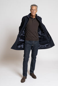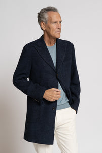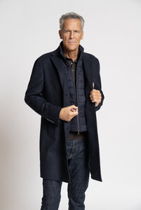 Cappotto in Lana con Collo e Petto trapuntato staccabile Navy - Realizzabile Anche Su Misura