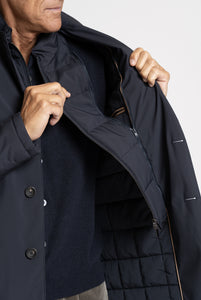 Cappotto in Tessuto Tecnico Olmetex con Collo e Petto trapuntato staccabile Blu - Realizzabile Anche Su Misura