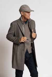 Cappotto in Lana con Collo e Petto Trapuntato Staccabile Spigato Beige e Marrone - Realizzabile Anche Su Misura