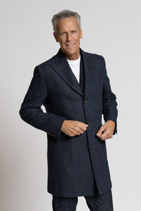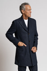 Cappotto monopetto in lana Fantasia Diagonale Blu e Navy