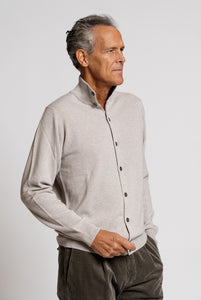 Cardigan in misto cashmere con collo alto Beige Chiaro