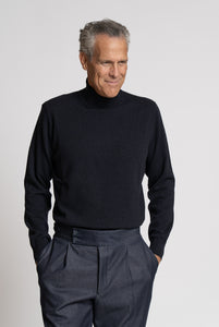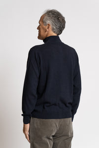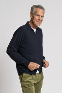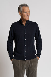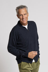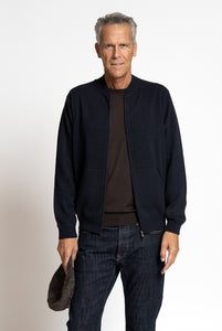Cardigan in Misto Cashmere con Zip frontale, Navy