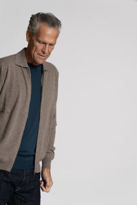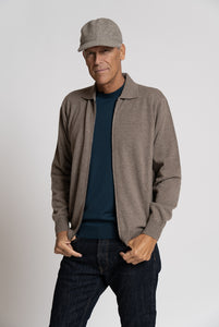Cardigan in Misto Cashmere con Zip frontale, Beige Scuro Melange