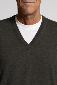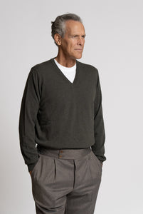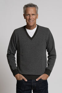 Maglia Scollo a V in Lana Merino Micrografica Geometrica, Marrone e Taupe
