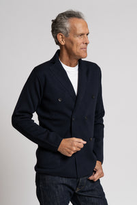 Giacca Maglia Doppiopetto in Lana Merino Navy