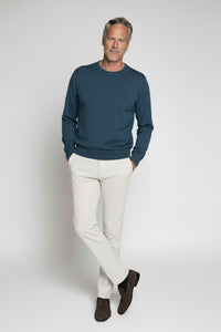 Rundhalspullover aus extrafeiner Royal Merinowolle in Marineblau