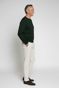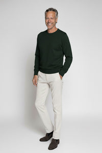 Dunkelgrüner Rundhalspullover aus extrafeiner Royal Merinowolle